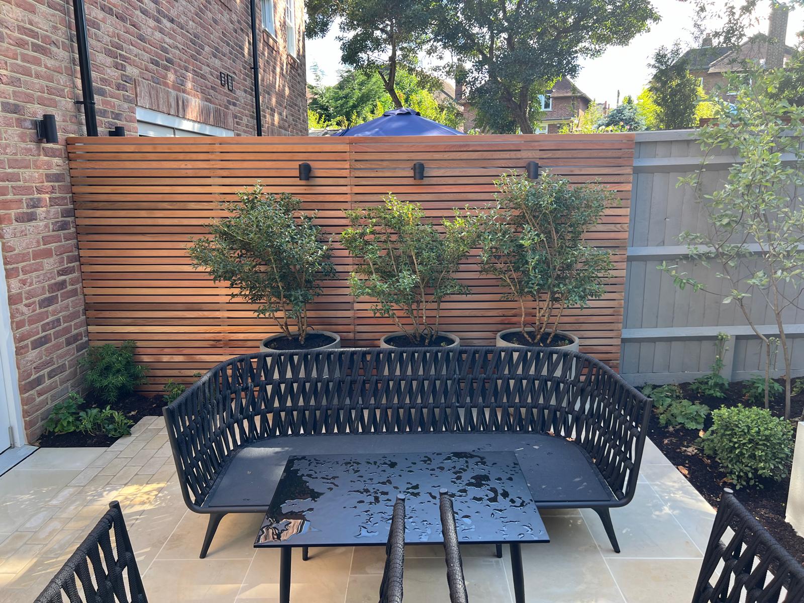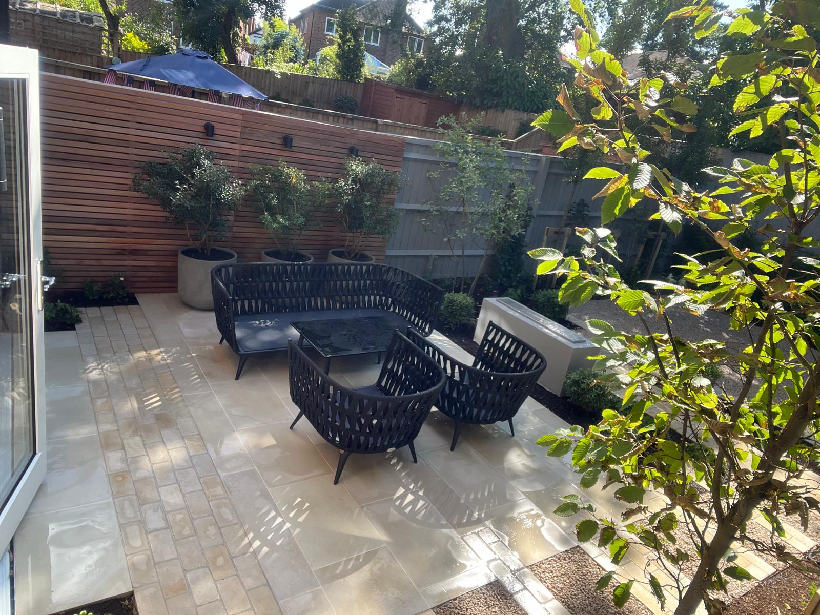 This prestigious Beaconsfield back garden was transformed into a sophisticated outdoor entertaining space, perfectly suited to the homeowners' lifestyle and their desire for a high-quality garden where they could host family and friends in style.