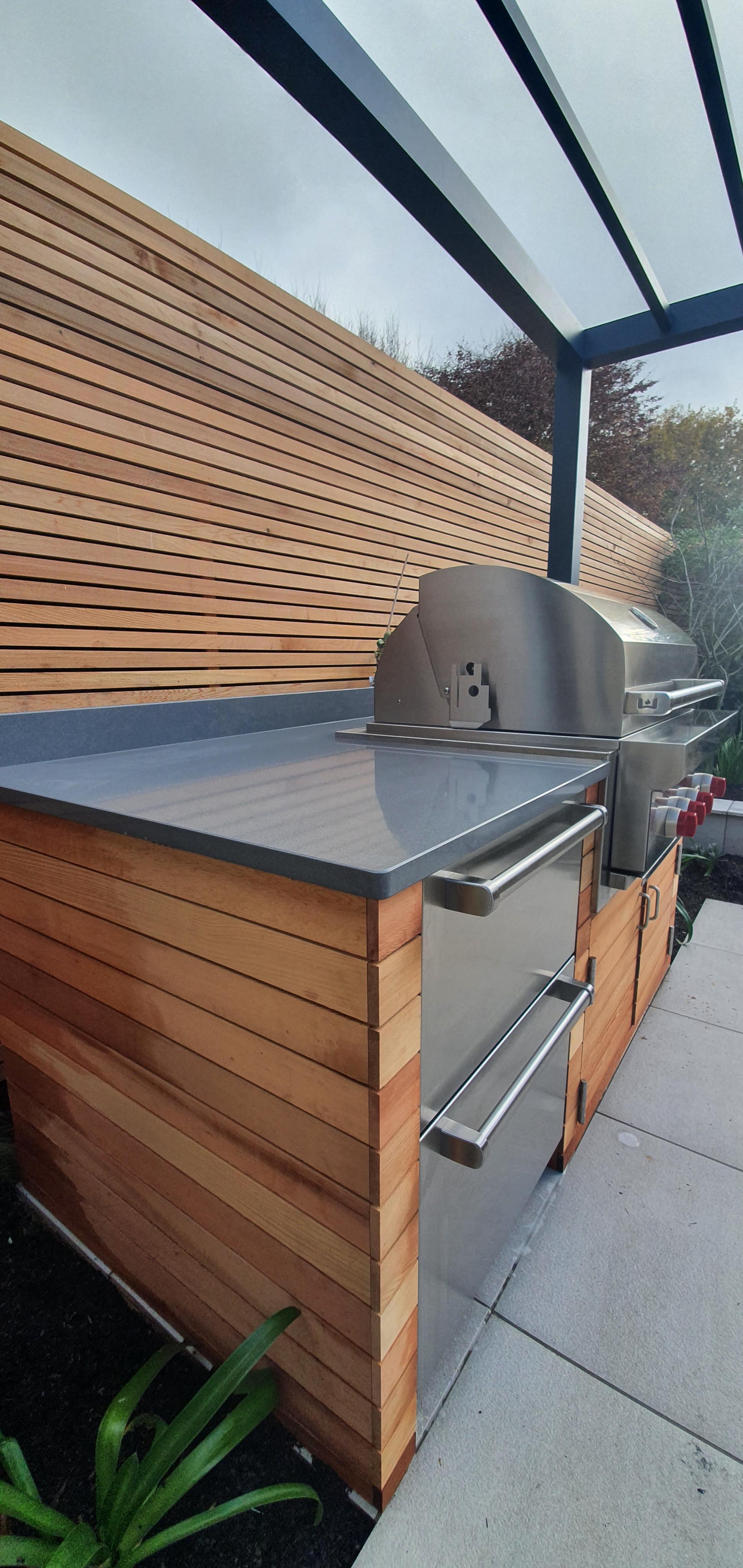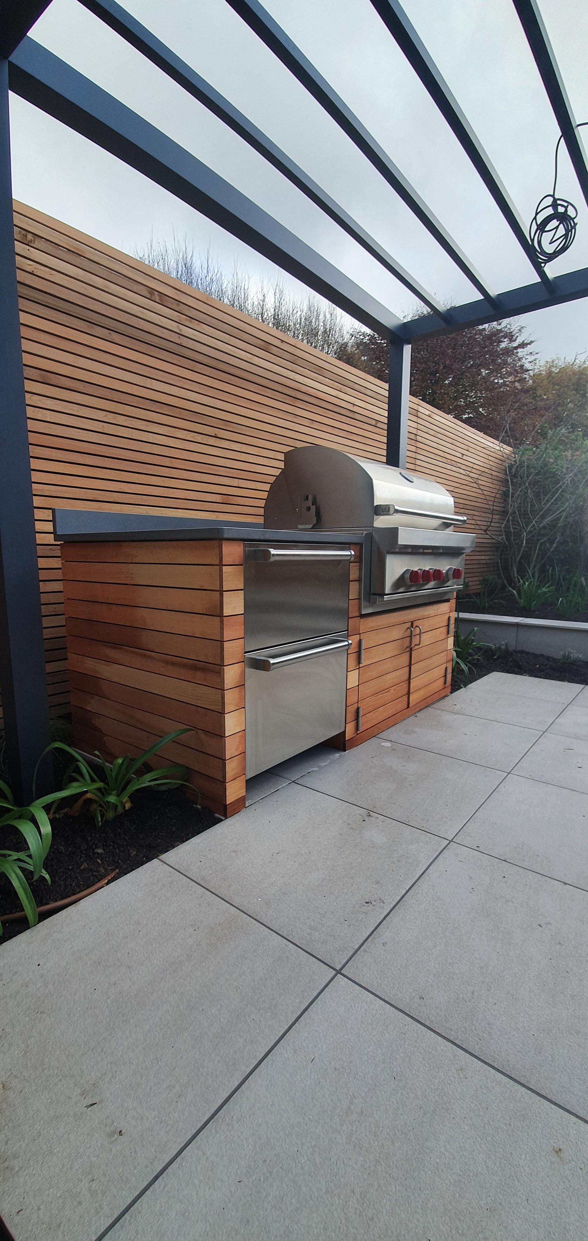 The installation of a premium BBQ area forms the focal point of the outdoor entertaining space, providing a high-quality cooking station that allows the homeowners to prepare meals outdoors with ease. This dedicated cooking zone is perfectly integrated into the overall design, ensuring that hosts can remain part of the social atmosphere whilst preparing food for family and friends.