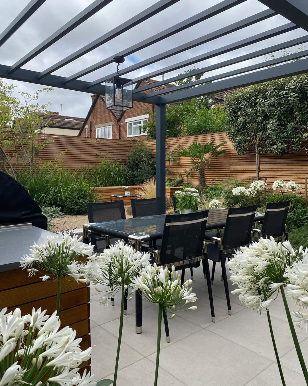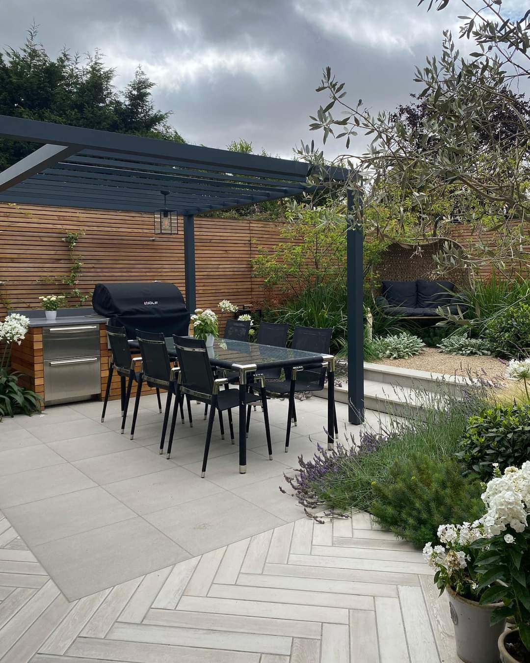Complementing the structural elements, the soft landscaping introduces layers of planting that soften edges, add colour and create seasonal interest. Carefully selected plants frame the entertaining areas, provide privacy and bring life to the space, ensuring the garden feels established and inviting rather than stark or overly formal.
