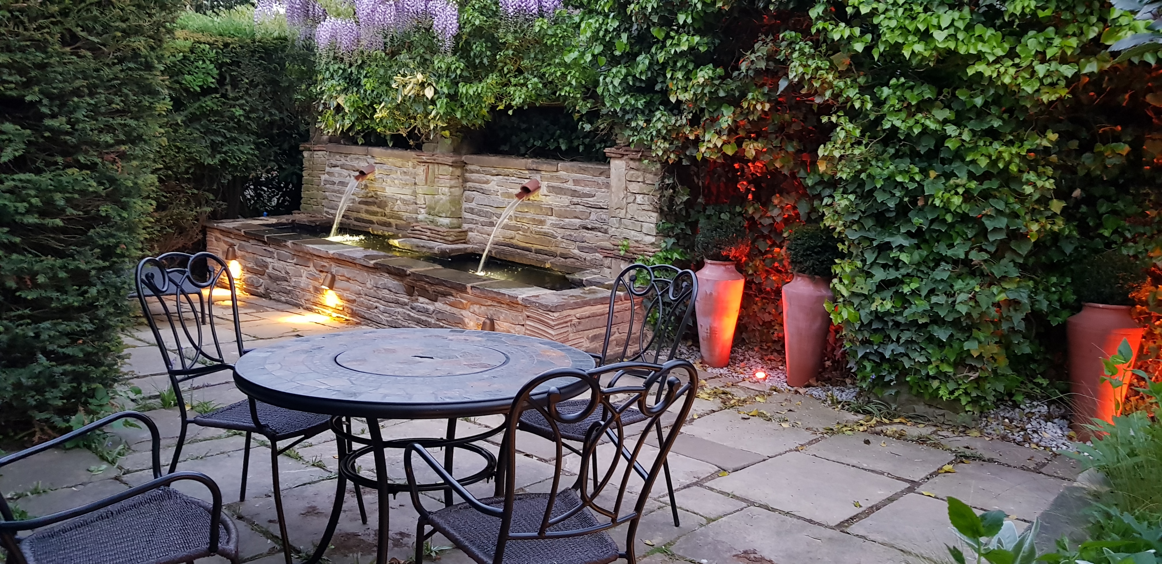 A comprehensive planting scheme ties the entire project together, introducing colour, texture and seasonal interest throughout the space. Carefully selected plants soften edges, frame water features and are positioned to take full advantage of the lighting scheme, ensuring they look attractive both during the day and when illuminated after dark. The planting includes a mix of evergreen structure and seasonal highlights, providing year-round interest whilst creating a sense of maturity and establishment that makes the garden feel complete.