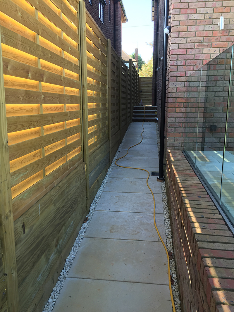 This comprehensive Radlett property transformation addressed both front and rear outdoor spaces, creating improved access, enhanced aesthetics and better functionality throughout the entire plot through expert hard landscaping and quality boundary treatments.