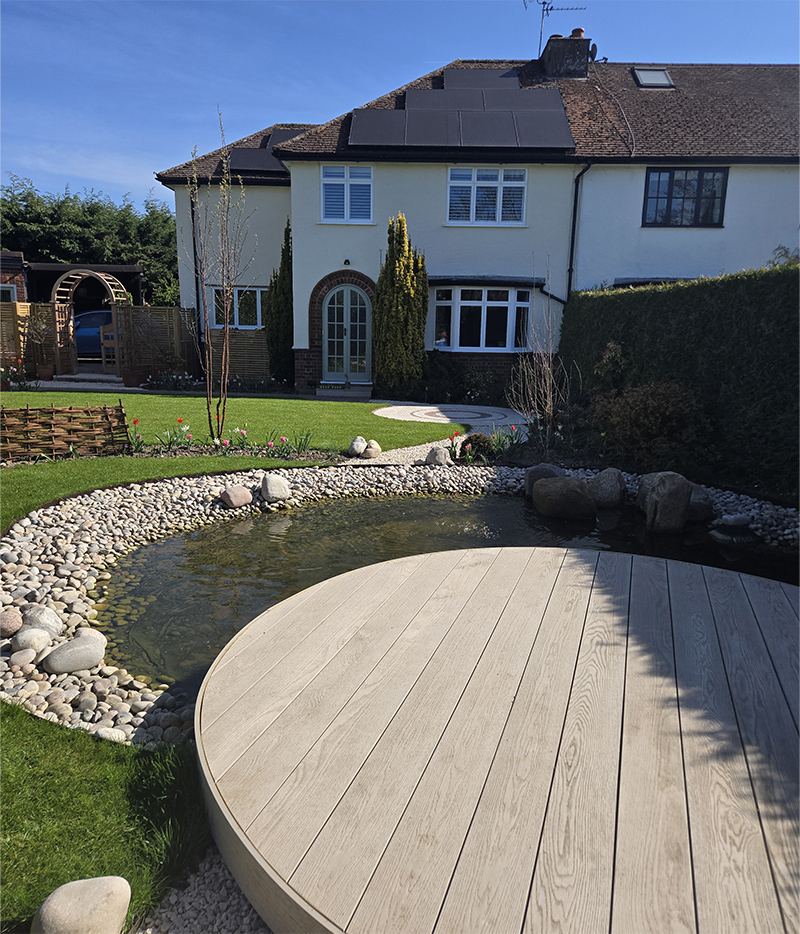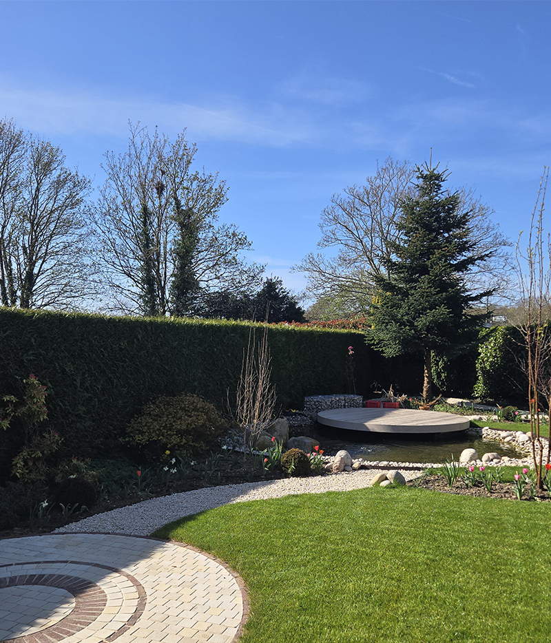 This charming Sandridge garden project brought together essential hard landscaping elements with the tranquil beauty of water and thoughtful planting to create a balanced, attractive outdoor space that offers both practicality and peaceful enjoyment.